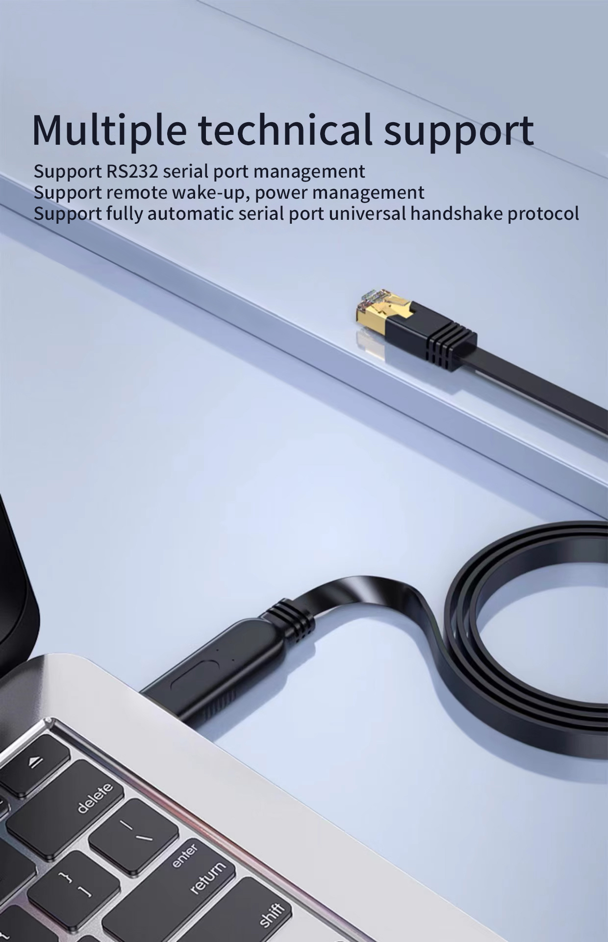 This USB 2.0 to RJ45 Console Cable is designed for IT engineers, network technicians, and field service professionals who need reliable access to the console ports of network devices. It provides a modern solution for connecting laptops and PCs to routers, switches, servers, firewalls, modems, and other serial-based equipment—without requiring an RS232 port or bulky adapters.